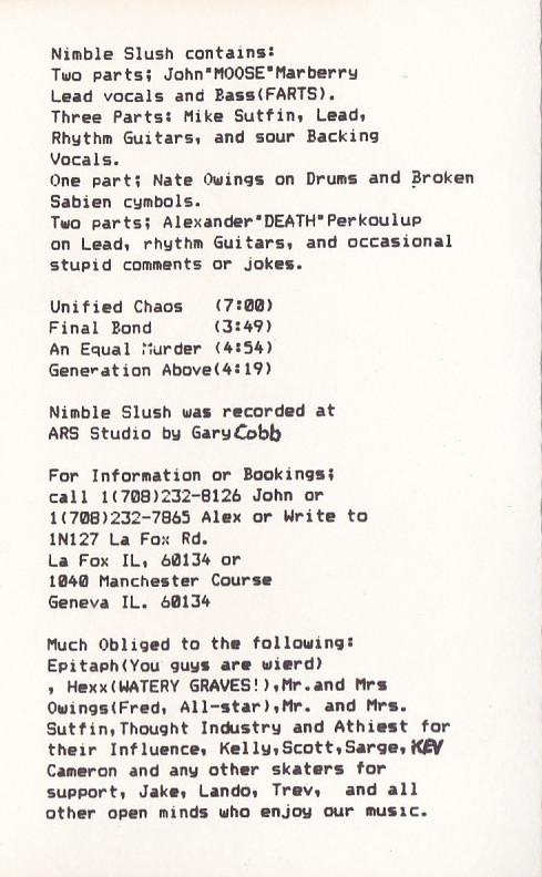 | Лейбл: | Not On Label (Nimble Slush Self-released) – none |