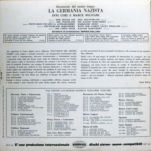 Various – La Germania Nazista - Inni Cori E Marce Militari