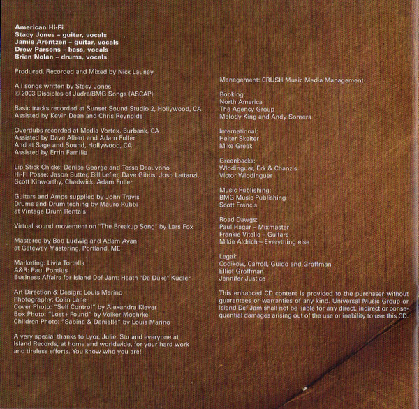 - Band [American Hi-Fi], Guitar, Vocals, Written-By – Stacy Jones
