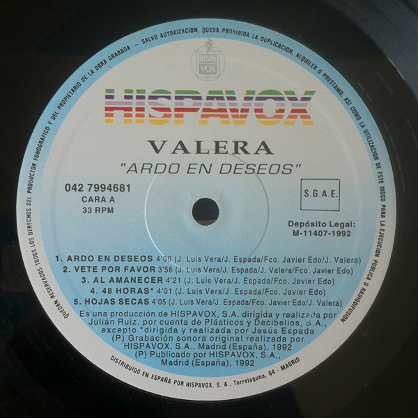 - Phonographic Copyright (p) – Hispavox, S.A.