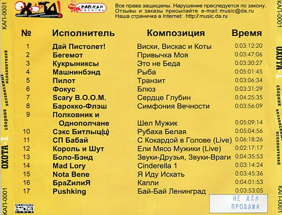 Various – Охота-1. Сборник Независимых Исполнителей. [Охота! #1. Лучший Сборник Независимых Исполнителей]