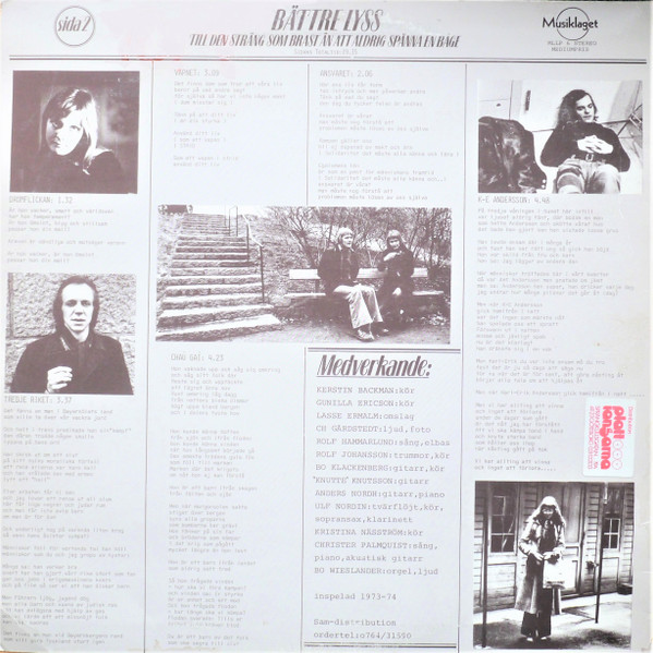Lyrics By – Ch Gårdstedt Lyrics By – Rolf Hammarlund Music By – Rolf Johansson (3) Music By – Rolf Hammarlund Music By – Bo Klackenberg |