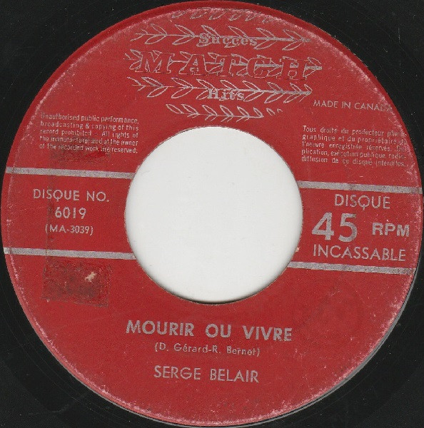 Serge Bélair – Je Chante Pour Un Ami / Mourir Ou Vivre