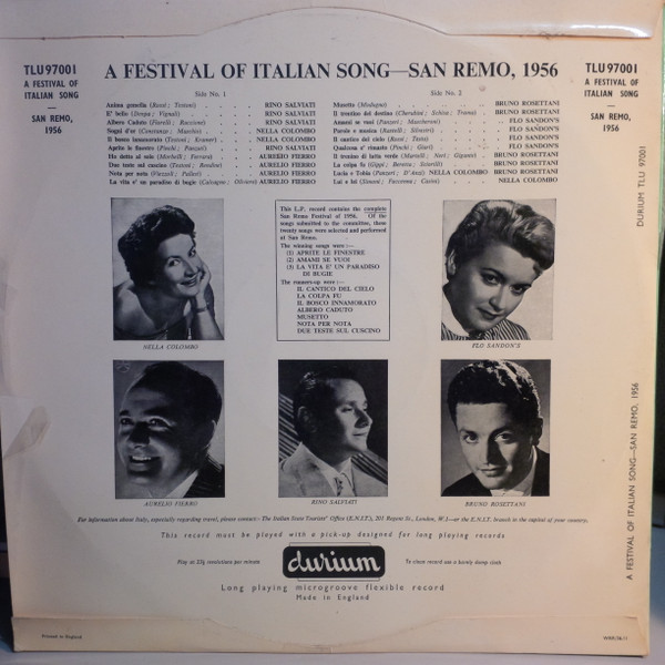 Various – A Festival Of Italian Song - San Remo, 1956