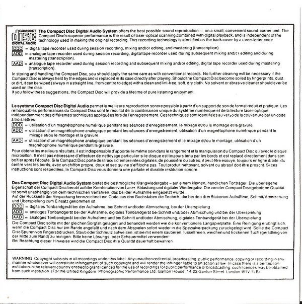 - SPARS Code Rear of inlay: AAD