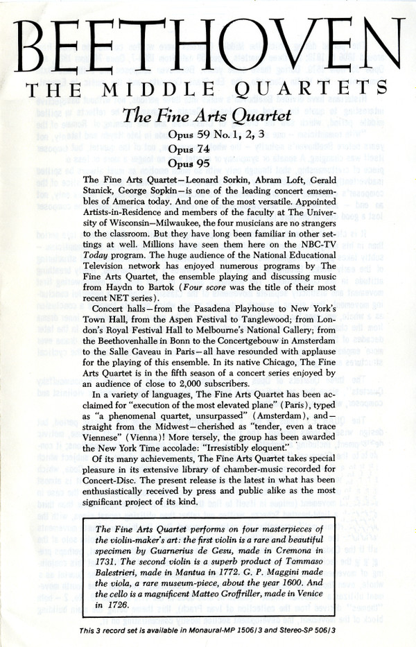 Ludwig van Beethoven – The Middle Quartets • Opus 59 No. 1,2,3 • Opus 74 • Opus 95