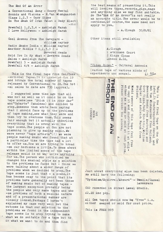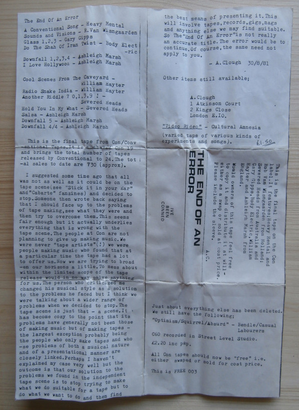 Лейбл: Conventional Tapes – Con 19 Conventional Tapes – FREE 003