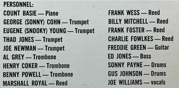 Featuring – Frank Foster Featuring – Thad Jones Featuring – Count Basie Featuring – Frank Wess Written-By – Count Basie Written-By – Lester Young Written-By – Shad Collins |