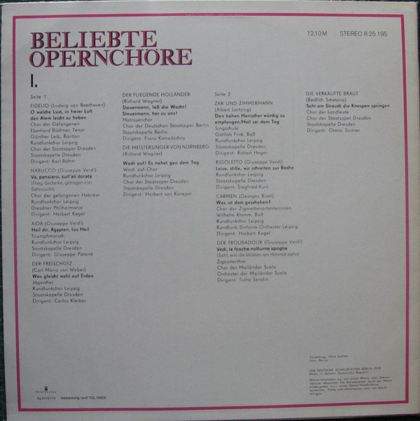 Various – Beliebte Opernchöre I. Folge