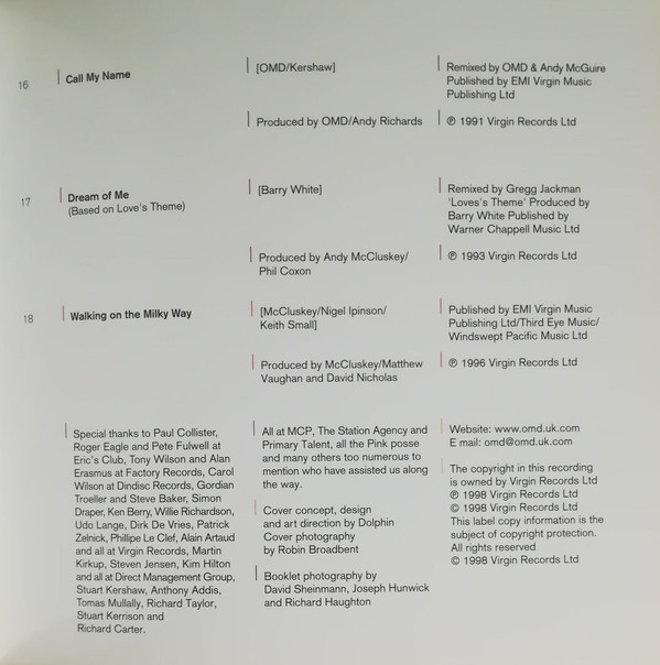 Producer – Andy McCluskey Producer – Phil Coxon Producer ['love's Theme'] – Barry White Remix – Gregg Jackman Written-By – Barry White |