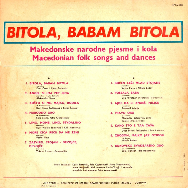 Various – Bitola, Babam Bitola (Macedonian Folk Songs And Dances)