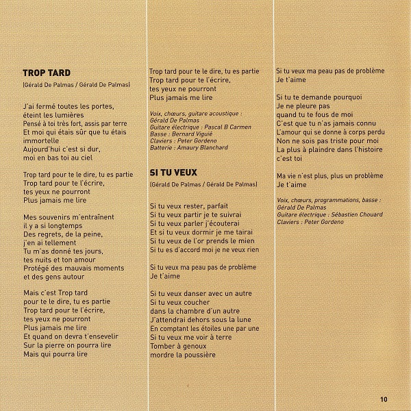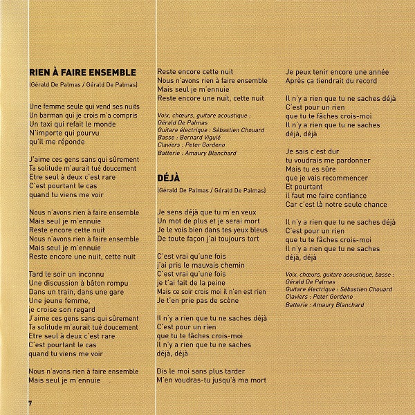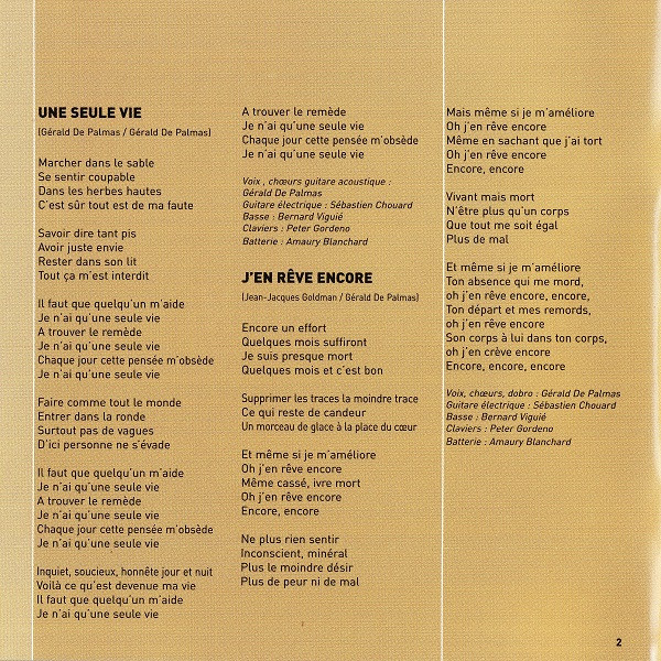 - Lyrics By, Music By – Gérald de Palmas