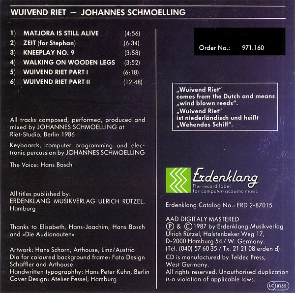 - Composed By, Keyboards, Percussion [Electronic], Programmed By [Computer], Performer, Mixed By, Producer – Johannes Schmölling