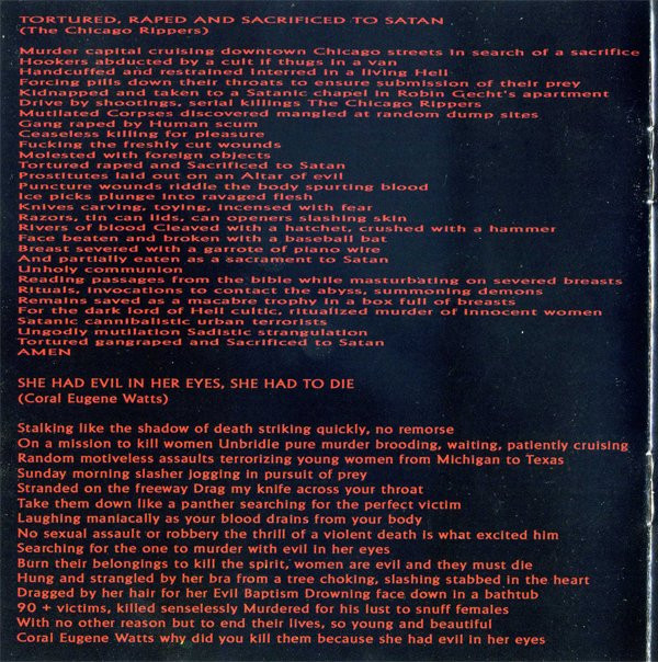 | 3 | Tortured, Raped And Sacrificed To Satan |