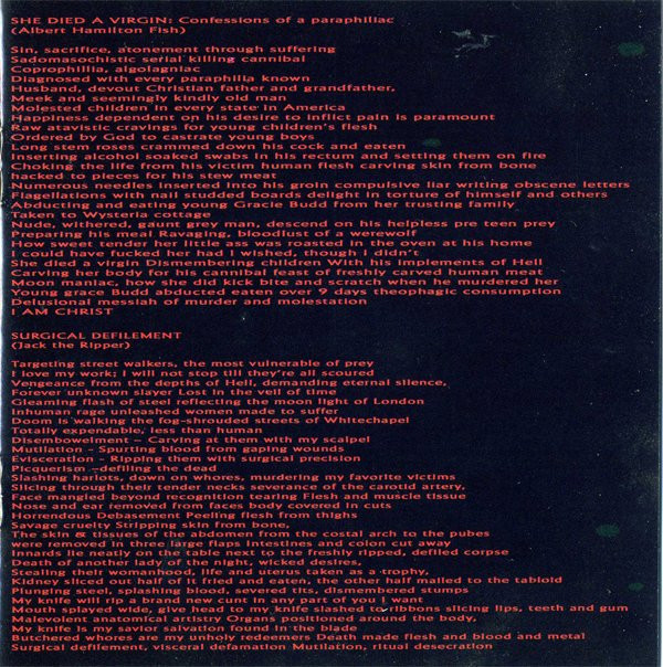 | 14 | Violated, Mutilated, Decapitated |