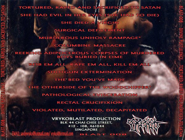 Divine Pustulence – Tortured, Raped And Sacrificed To Satan