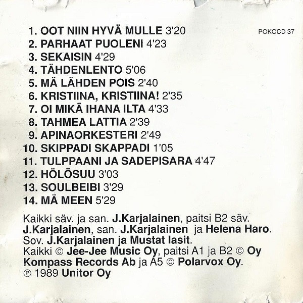 - Performer [J. Karjalainen Ja Mustat Lasit], Guitar, Vocals – J. Karjalainen