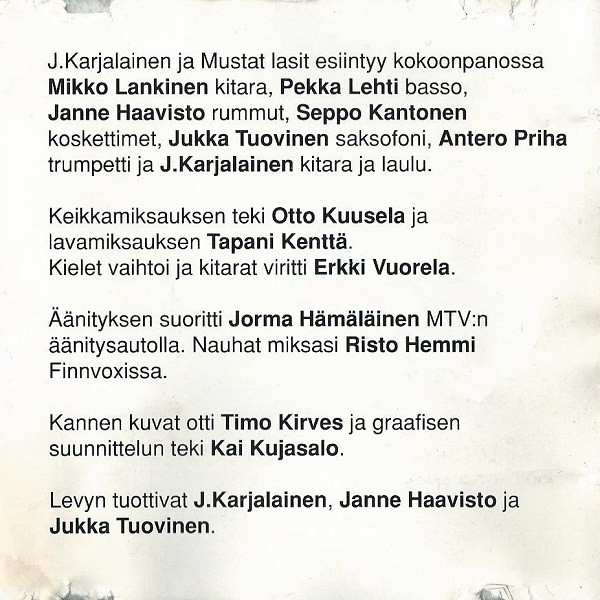 - Arranged By – J. Karjalainen Ja Mustat Lasit