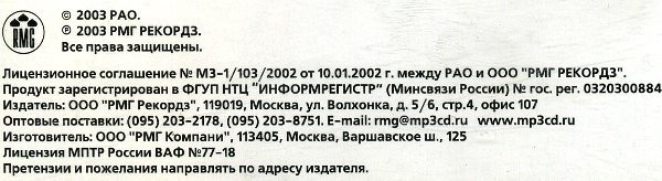 - Matrix / Runout : RMG 1090-MP3 www.compactdiski.ru