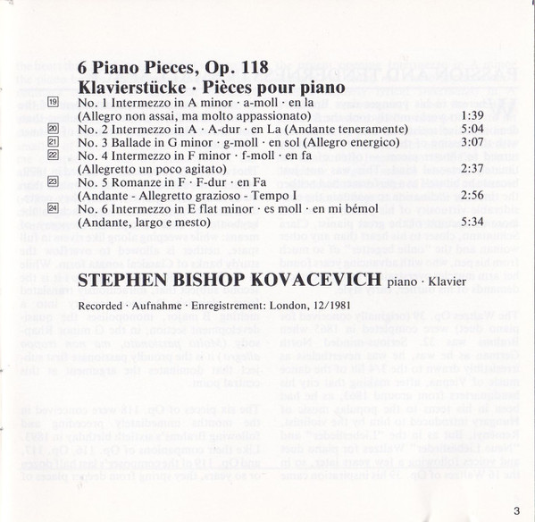 | 6 Piano Pieces, Op. 118 = Klavierstücke = Pièces Pour Piano |