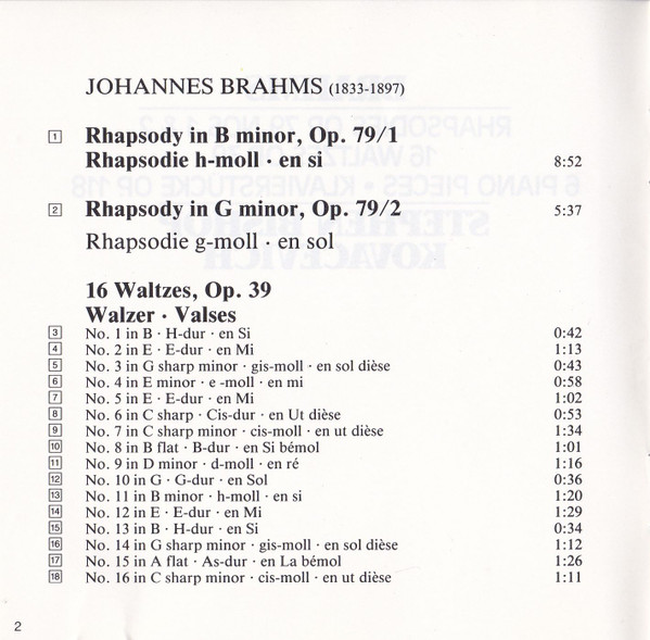| 2 | Rhapsody In G Minor = Rhapsodie G-Moll = En Sol, Op. 79/2 |
