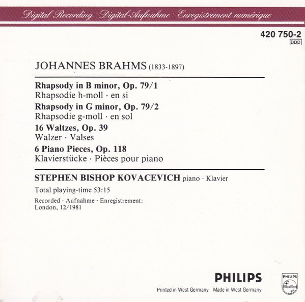 | 1 | Rhapsody In B Minor = Rhapsodie H-Moll = En Si, Op. 79/1 |