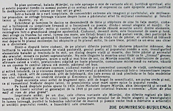 - Liner Notes – Zoe Dumitrescu-Bușulenga