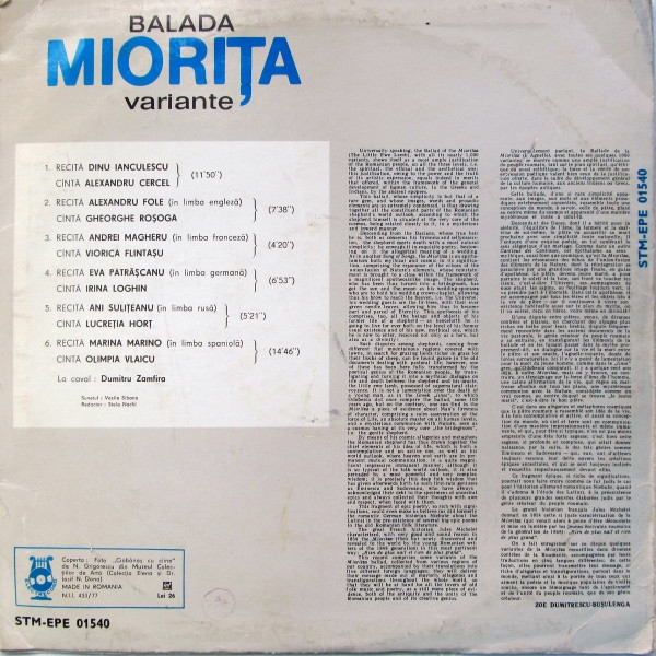 | B6 | Balada Miorița (În Limba Spaniolă) | 14:46 |