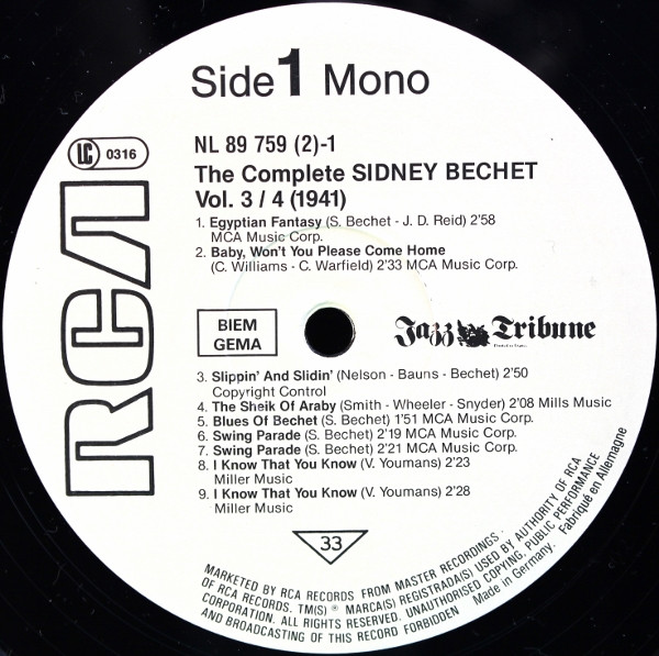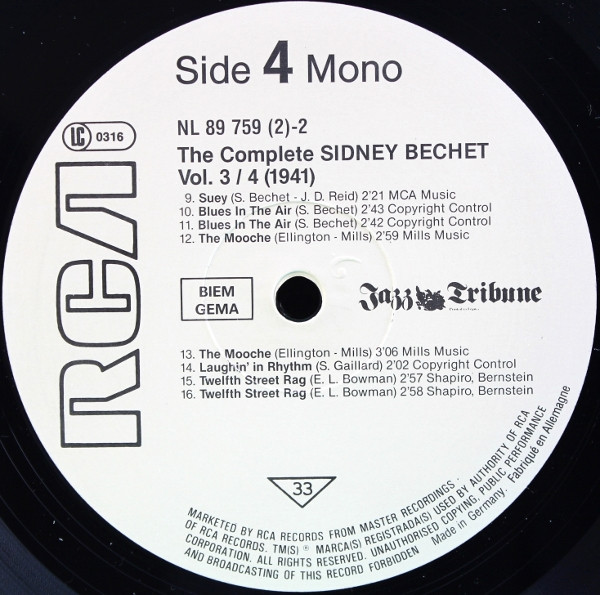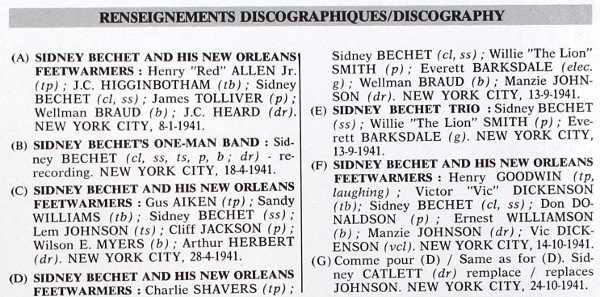Clarinet, Soprano Saxophone, Tenor Saxophone, Piano, Bass, Drums – Sidney Bechet |