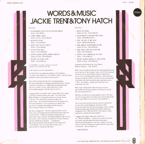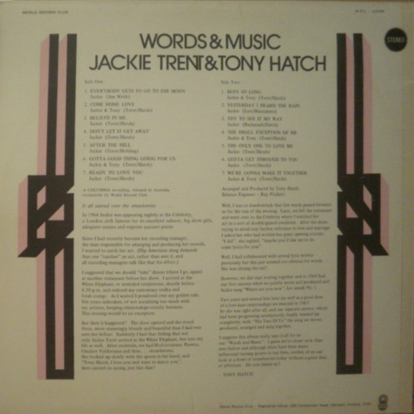 Written-By – Jackie Trent & Tony Hatch |