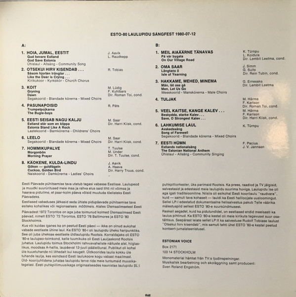 Various – Esto-80 Laulupidu Sångfest 1980-07-12