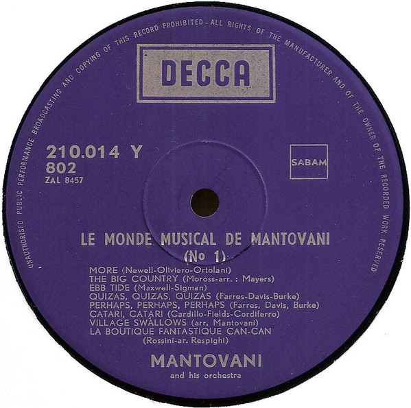 Mantovani And His Orchestra – Le Monde Musical De Mantovani N° 1