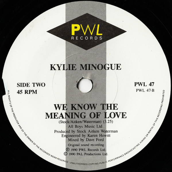 - Phonographic Copyright (p) – PWL Records Ltd.