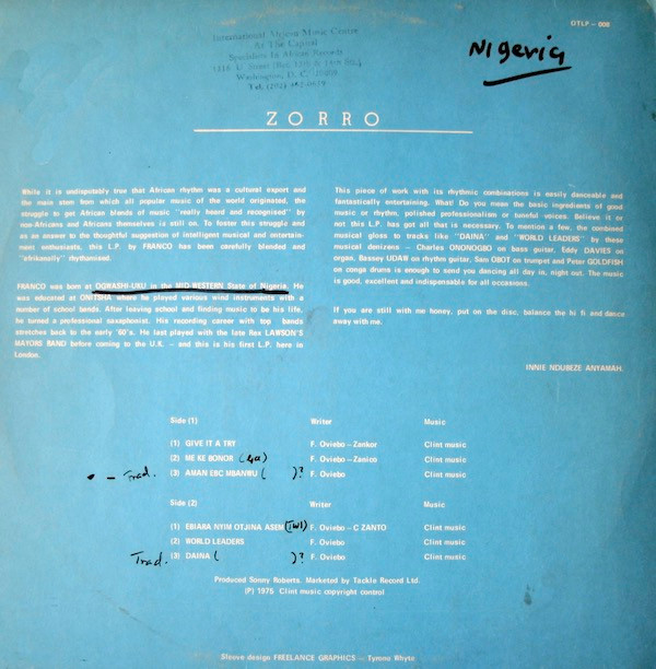 - Composed By, Leader, Saxophone, Written-By – Franco Oviebo