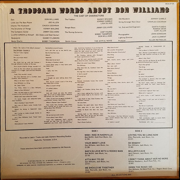 - Vocals, Guitar – Don Williams (2)