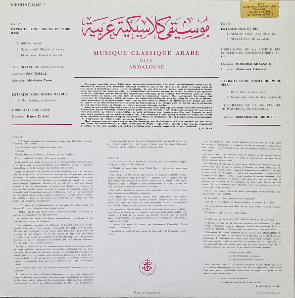 Various – موسيقى كلاسيكية عربية - المهرجان الجزائري الثاني للموسيقى الأندلسية = Musique Classique Arabe - 1er Festival Algérien De La Musique Andalouse 1967 : Disque 1