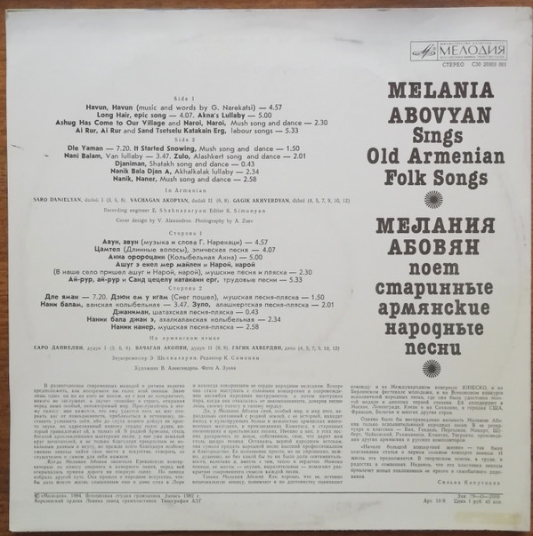 Melania Abovyan – Melania Abovyan Sings Old Armenian Folk Songs = Мелания Абовян Поет Старинные Армянские Народные Песни