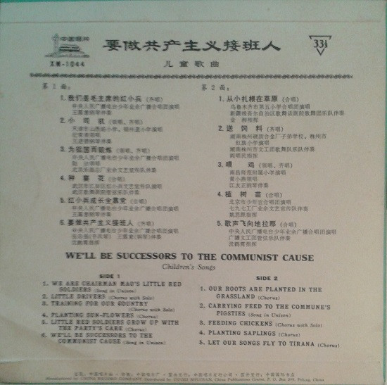 Various – 要做共产主义接班人 = We'll Be Successors To The Communist Cause, Children's Songs