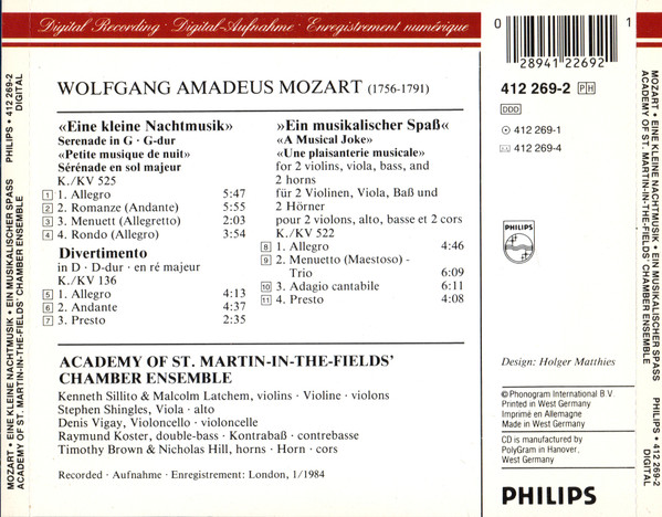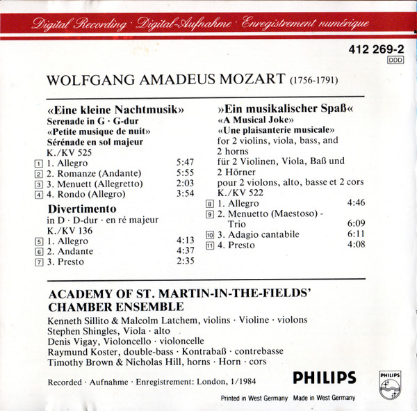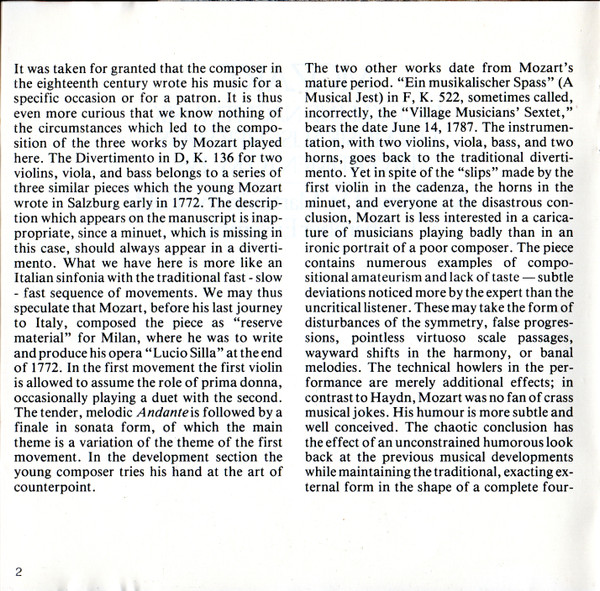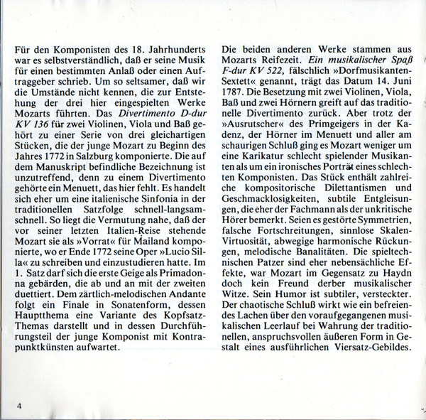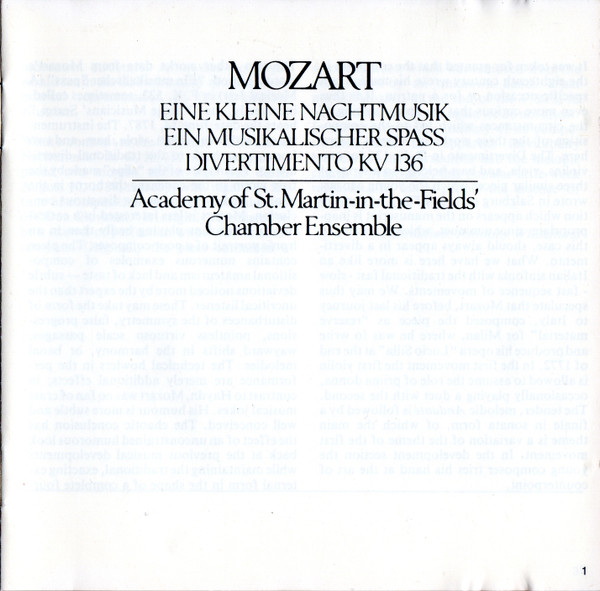 Wolfgang Amadeus Mozart – Eine Kleine Nachtmusik / Ein Musikalischer Spass / Divertimento KV 136