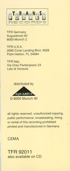 | Лейбл: | Transformer Records (2) – TFR 92011 |