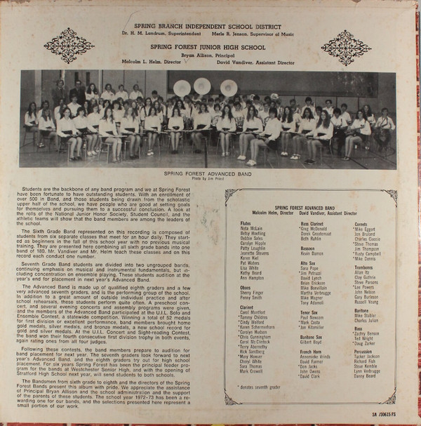 Various – Spring Forest Junior High School Bands 1972-73
