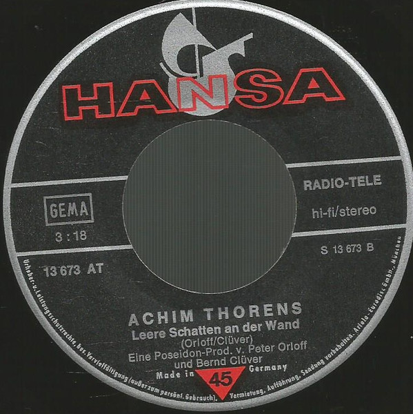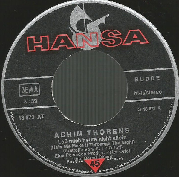 Achim Thorens – Laß Mich Heute Nicht Allein (Help Me Make It Through The Night / Leere Schatten An Der Wand