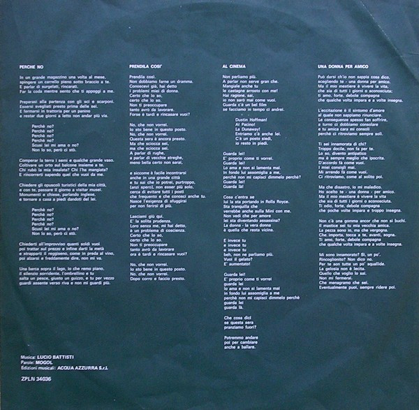 - Music By, Solo Vocal – Lucio Battisti