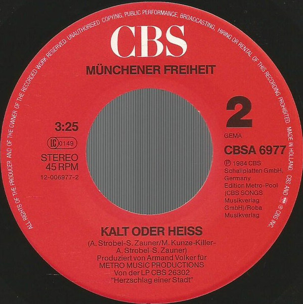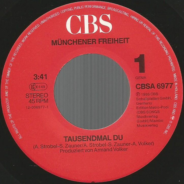 - Phonographic Copyright (p) – CBS Schallplatten GmbH