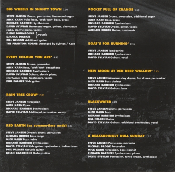 Guitar [Guitars], Electric Piano, Electronics [Shortwave Radio], Effects [Treatments], Vocals – David Sylvian