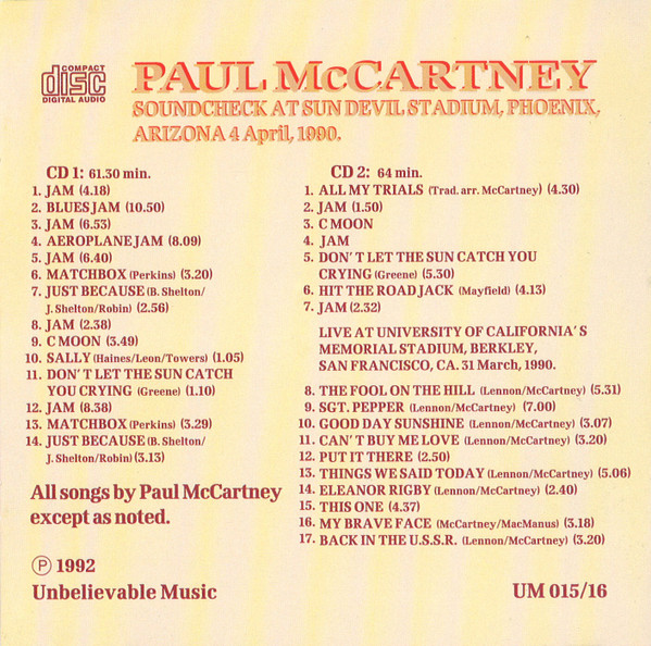 | Live At University Of California's Memorial Stadium, Berkley, San Francisco, CA. 31 March, 1990. |