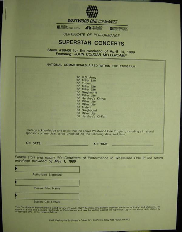 | Лейбл: | Westwood One – CO 89-06 |