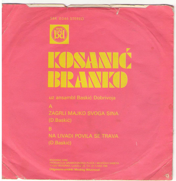 Branko Kosanić – Zagrli Majko Svoga Sina / Na Livadi Povila Se Trava