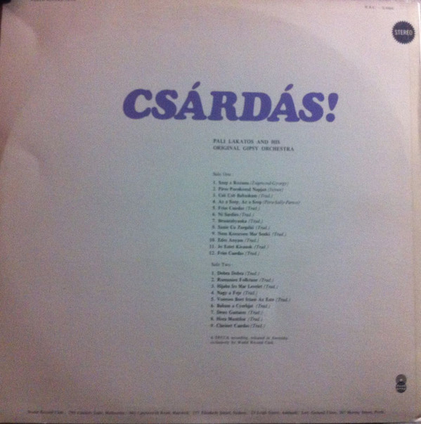 Pali Lakatos And His Original Gipsy Orchestra – Csárdás!