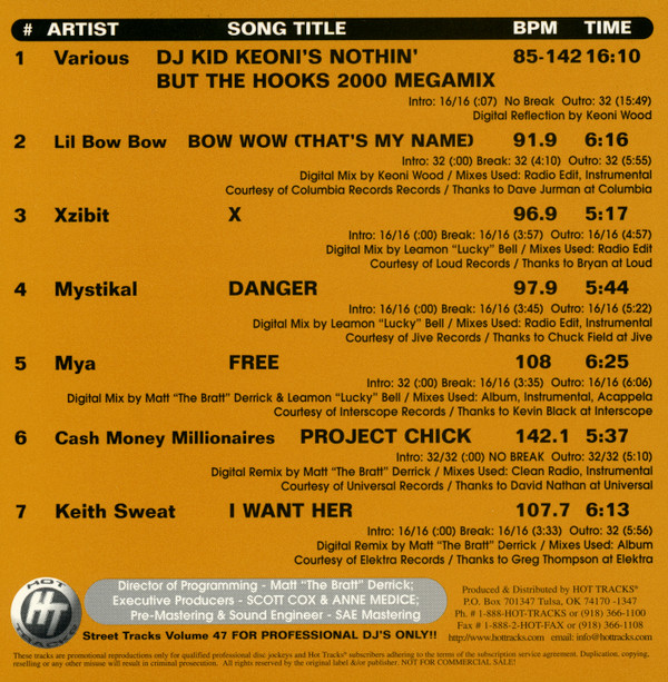 | 1 | DJ Kid Keoni's Nothin' But The Hooks 2000 Megamix | 16:10 | |